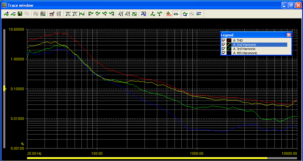 - Analysis is relatively slow for high resolution sweeps, especially for individual harmonic distortion results, which require an FFT result to be captured at each sweep step